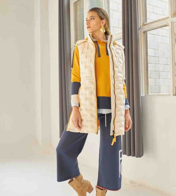 CHALECO LARGO CON CAPUCHA CREMALLERA Y BOLSILLOS