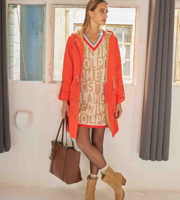 CHAQUETA LARGA CON CORDÓN EN CINTURA Y CAPUCHA