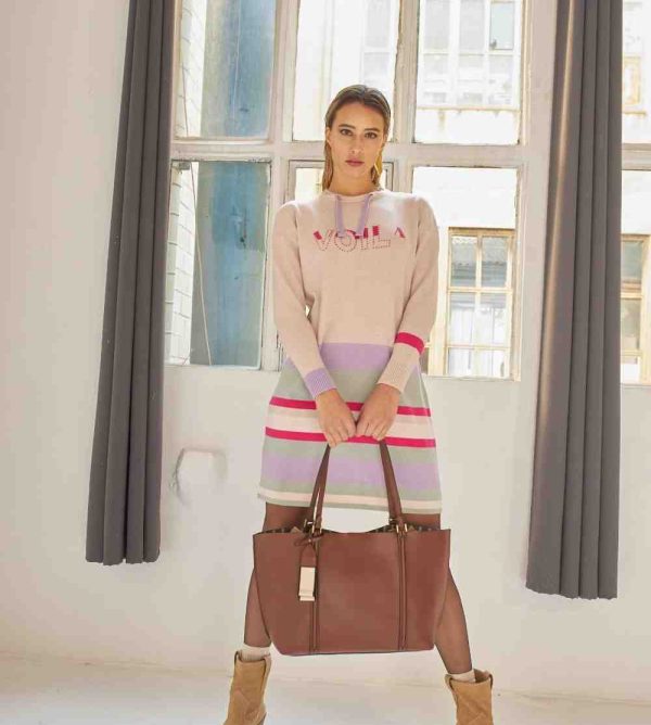 VESTIDO ESTAMPADO LETRAS Y CUELLO PICO MULTICOLOR
