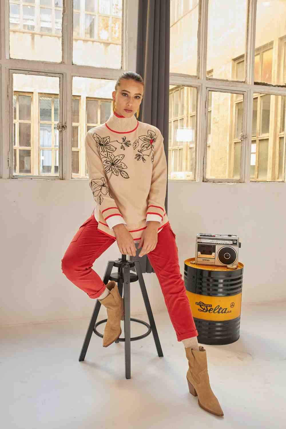 JERSEY CUELLO ALTO CON ESTAMPADO EN FLORES cantidad