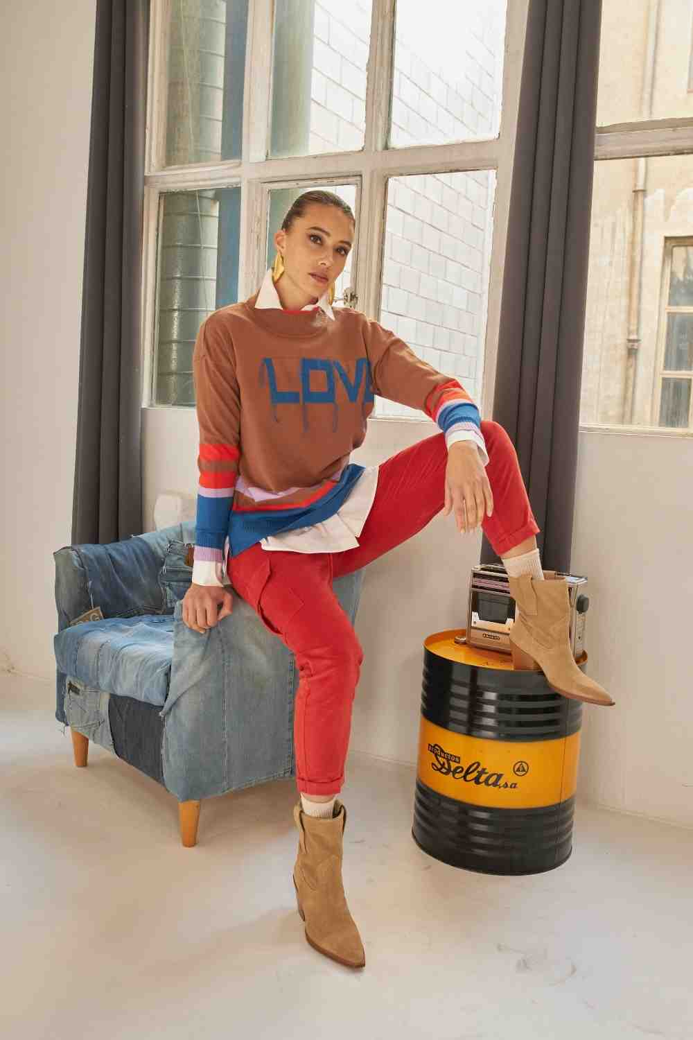 JERSEY CUELLO ALTO CON LETRAS EN EL FRONTAL Y DETALLES DE LINEAS EN MANGAS BAJO