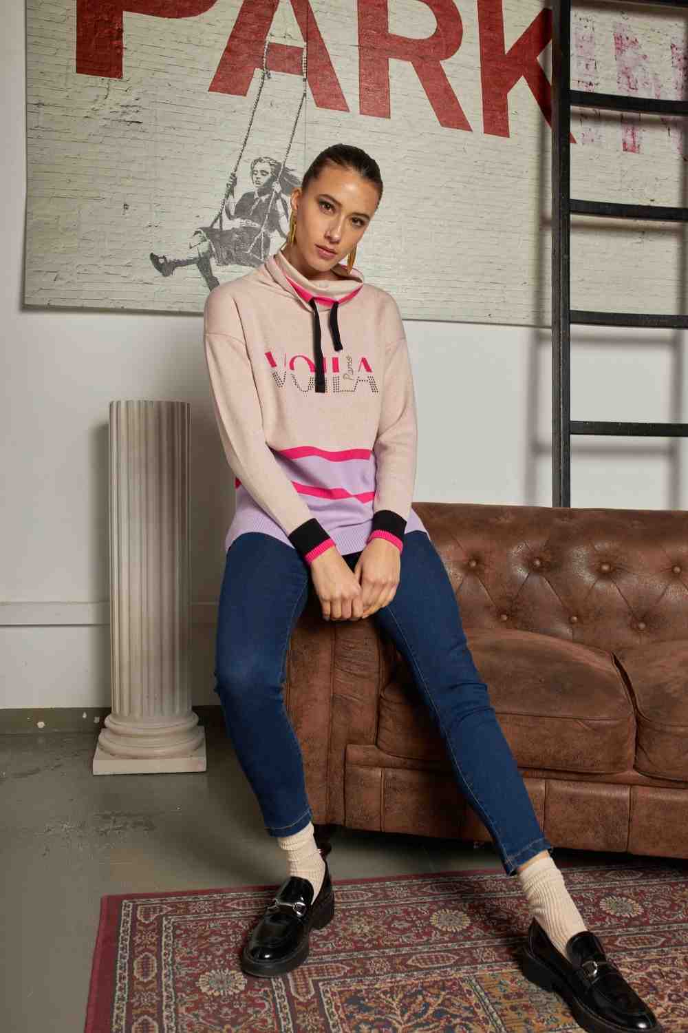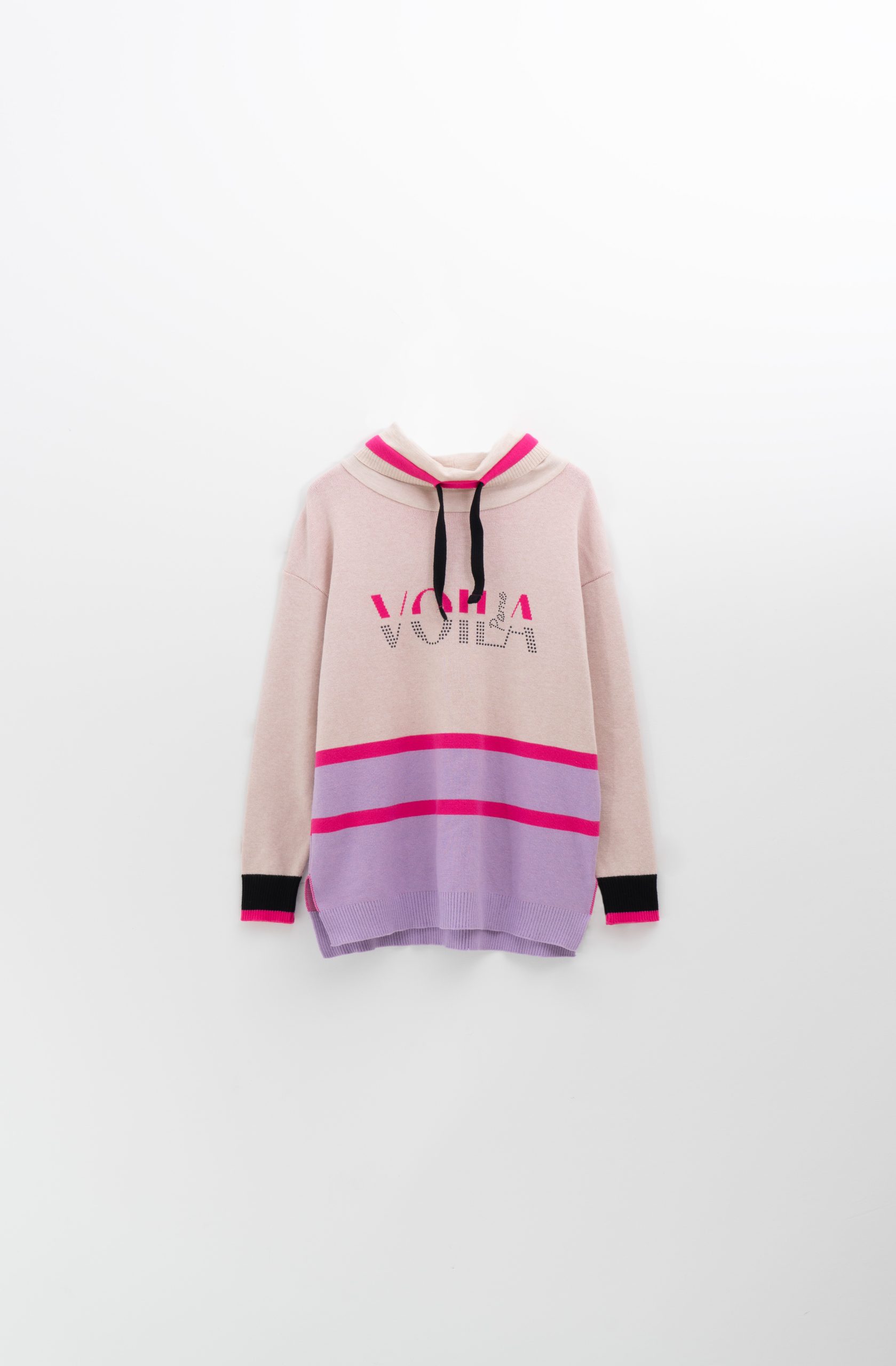 JERSEY DE TRICOT TIPO SUDADERA CON APERTURAS Y ESTRASS