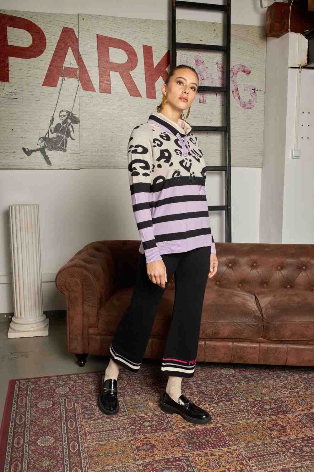 JERSEY TIPO SUDADERA EN TRICOT CON DETALLES EN ESTRASS