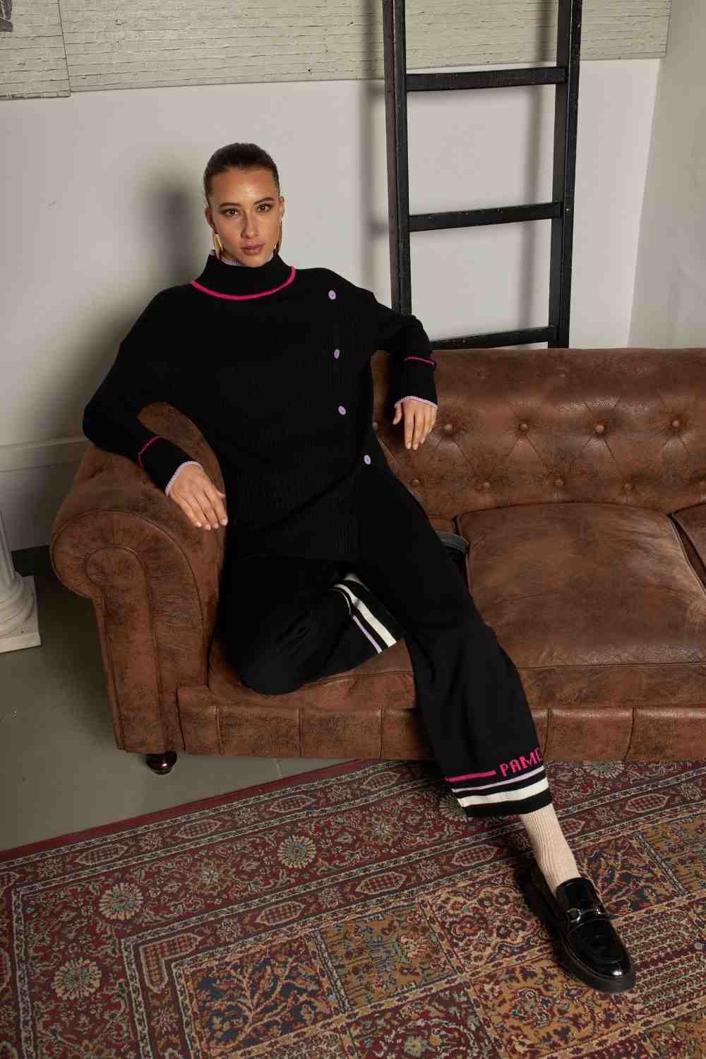 JESEY LARGO CUELLO ALTO NEGRO Y CON DETALLES EN MANGASS Y CUELLO